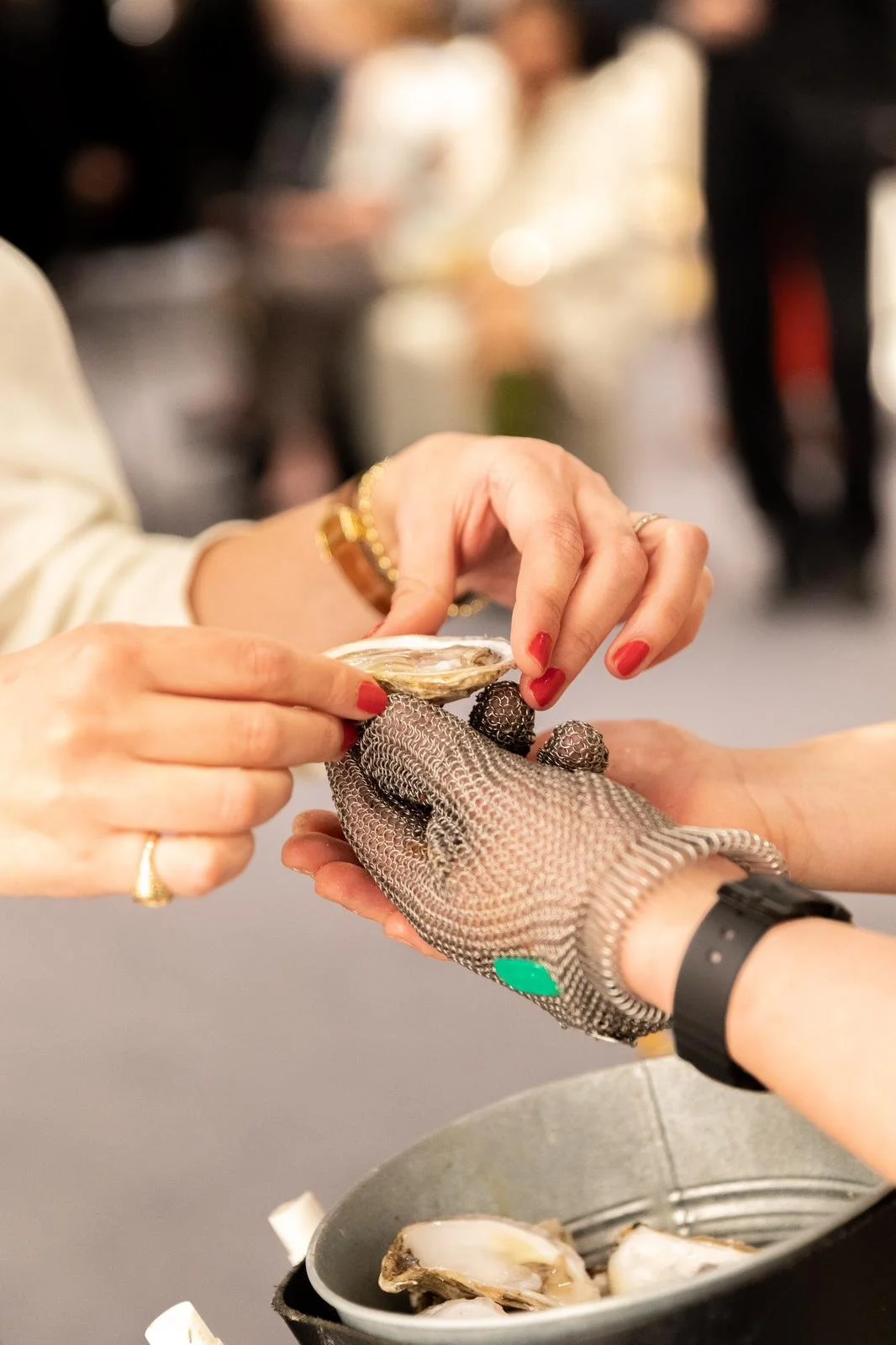 The team arrives ahead of time to prepare, setting up oyster coolers and getting event-ready with minimal disruption. Once underway, the shucker roams the space, actively engaging guests and inviting them to enjoy one (or a few!) freshly shucked oysters. All we need is a small area to change and store oyster coolers. All waste and empty shells are removed at the end of the experience and we take away all the waste shells.