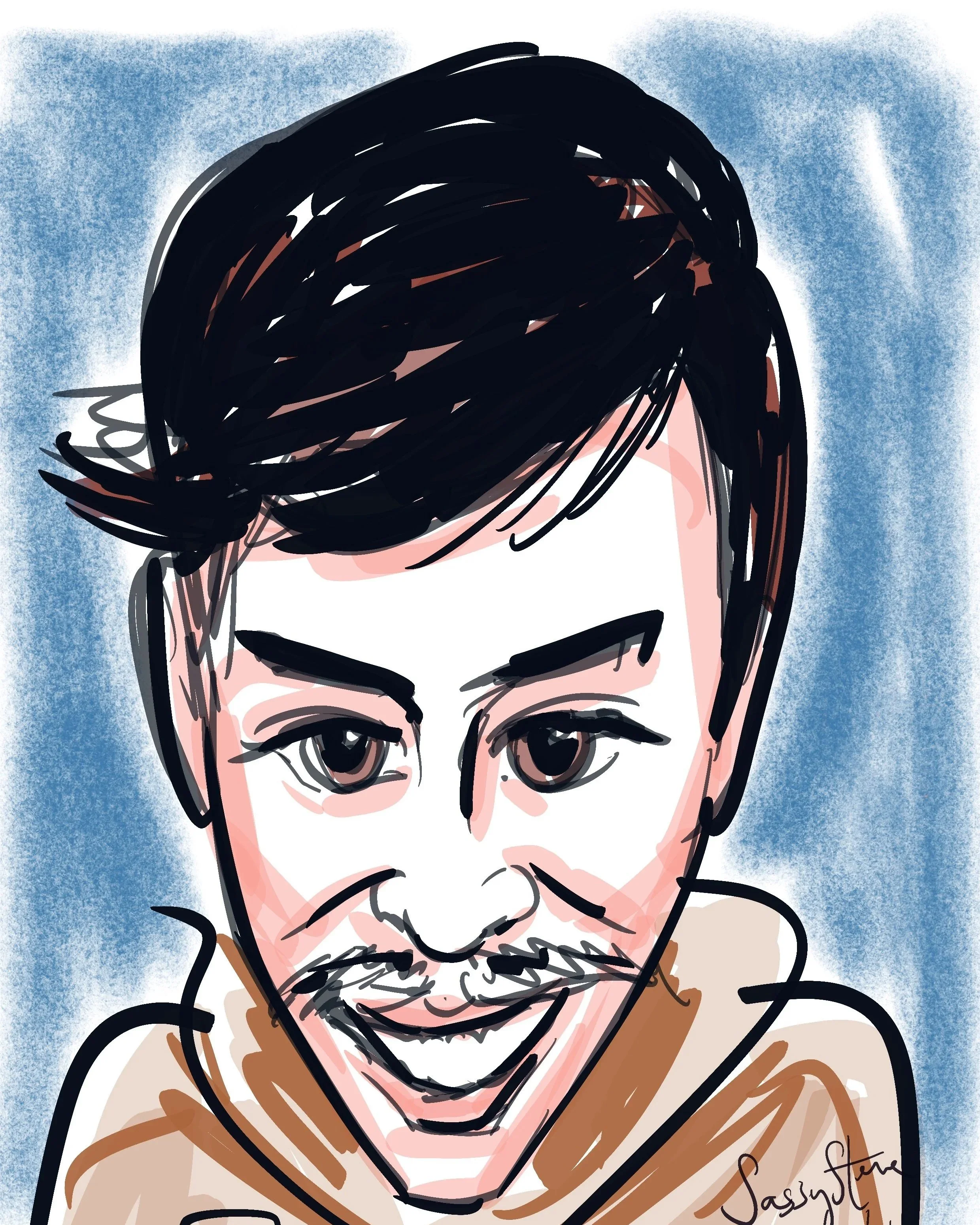 Steve is a trained art teacher and portrait artist who started selling his work at 14 years of age and attained his B.A. in Graphic Design at Central St Martin's in 1990. He has been merrily capturing guests with his speed sketching skills at weddings, hen nights, mitzvahs, birthdays and corporate events ever since.